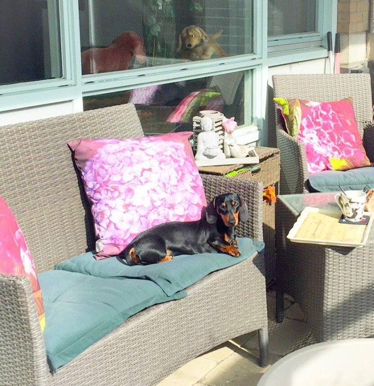 There is a saying “I only work so my dogs can have a better life!” And for me that is quite true, if I could manage with just being at home with them, I think I would really prefer that!! Not because it is easy – in fact pretty much the opposite – but because I find so much joy in working with them. But here are a few photos of Peony last week which make me think of the time spent with the girls in the garden at home.