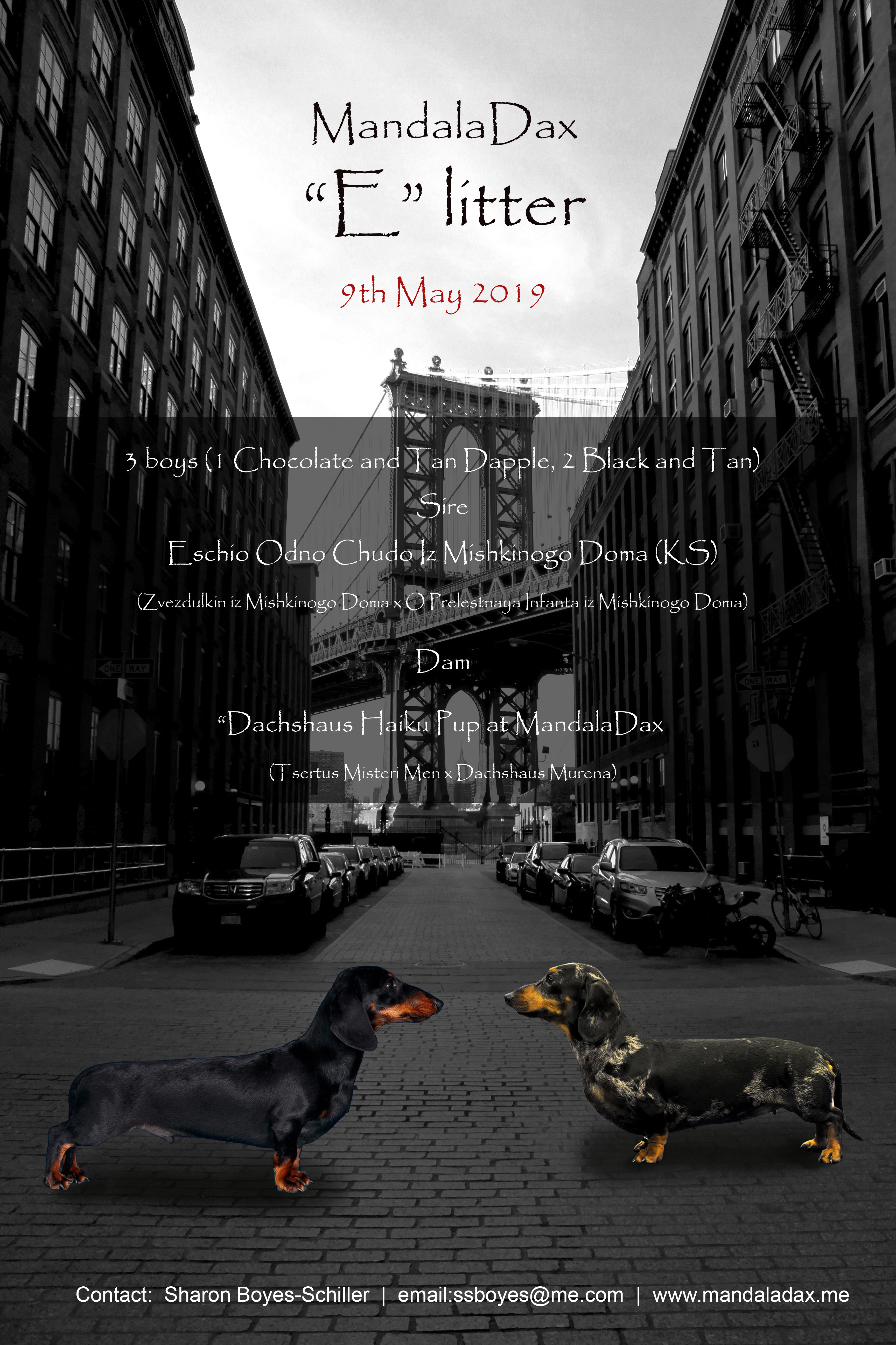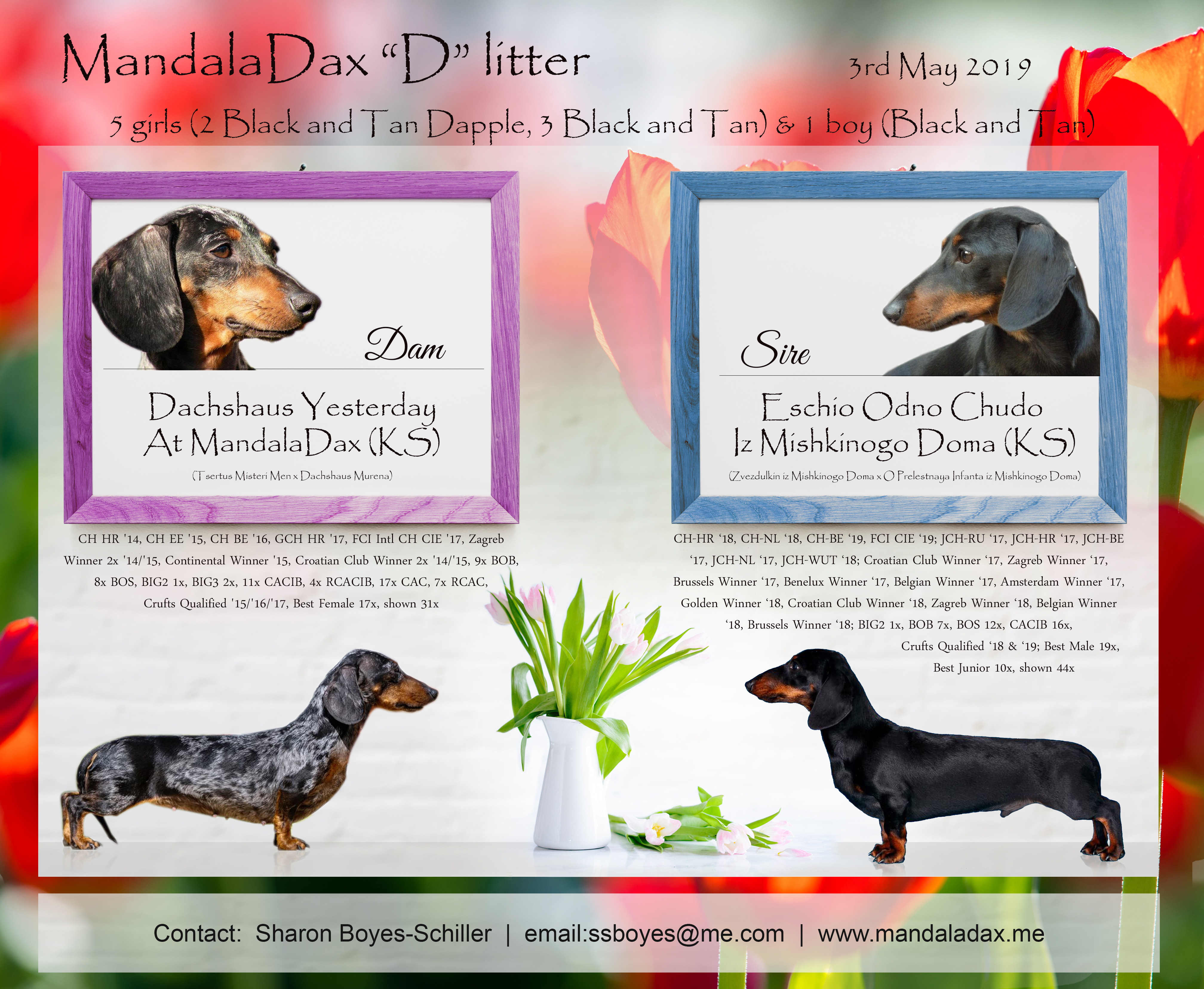 We are so very proud that Makar sired three litters in 2019, with Mandaladax Antique Peony (C litter), with Dachshaus Yesterday (D litter) and with Dachshaus Haiku Pup (E litter). We have had a wonderful time watching these puppies grow and and go to their homes.