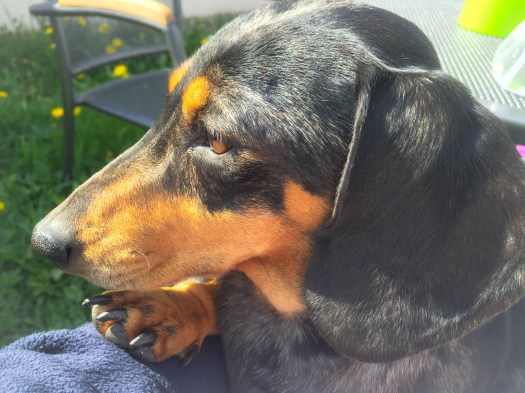 Vix or Vicky Doodles is the girl that I looked for long and hard to replace Berlina in my heart. She was born in July 2012 in Cardiff, Wales – her breeder, Karen Rees, is well known for her quality champion whippets, but she also has some very lovely miniature smooth dachshunds. Vicky’s mum is Izimus Coconut Ice at Kierpark (Monica) and her dad is Stargang What’s Up Doc (Bugs). I picked her out at two days old and fell in love then, and she has been such a wonderful companion. But she is not just that, she is also the mum of my very first litter. Like Tolka, she is a hunter and I don’t have enough fingers and toes to list all of her “successes” – she is a true working dachshund, she was only four months old when she got her first rat in Battersea Park. We lived initially in London and then in Leiden and eventually in Czechia, where she enjoys roaming the fields. Vicky isn’t shown often but she has a number of CACs and Reserve CACs to her name. She was so happy to be a mum and she still loves playing with the “puppies” who are now grown up.