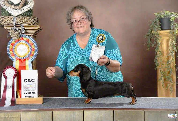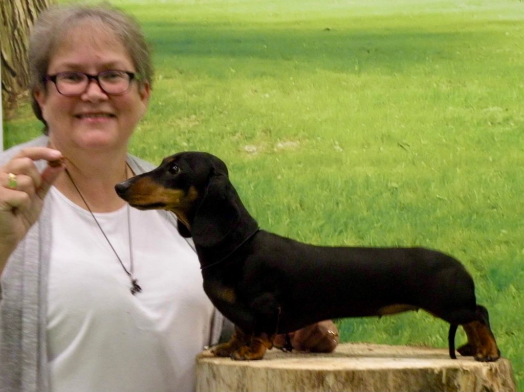 She has always been great fun to take to shows but equally a cuddle-bunny at home, and loves to lay in the sunshine. She was a wonderful mom to her pups, and although she is spayed now, I am sure she will be a fairy godmother to any new pups we have in the Tiny Teckel house.